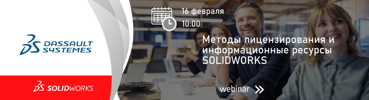 Хотите узнать, какой тип лицензирования наиболее эффективен для Вашего предприятия? Как получить доступ к онлайн обучению и бесплатной сертификации? Присоединяйтесь к вебинару: “Методы лицензирования и информационные ресурсы SOLIDWORKS” и Вы сможете получить ответы на эти и многие другие вопросы.