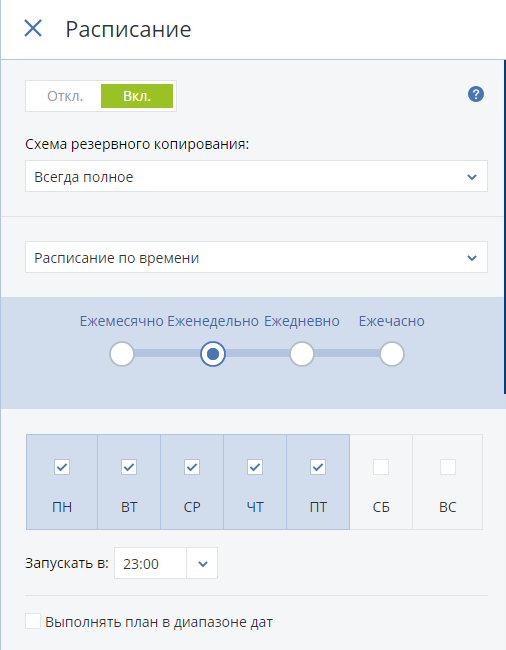 Выбор данных – можно выбрать весь сервер целиком или только часть файловой системы. Может быть важно для особо критичных данных.
