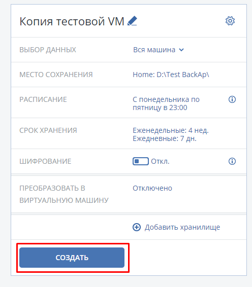 В первой строчке – название плана по резервному копированию.