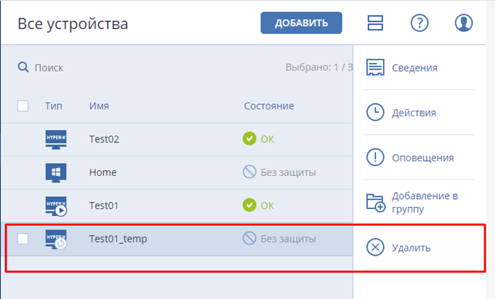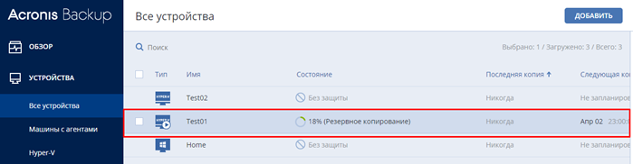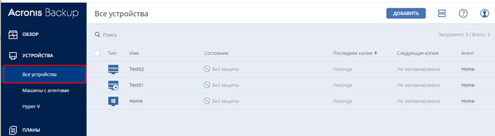 На вкладке все устройства отображаются сервера/рабочие станции доступные для резервирования