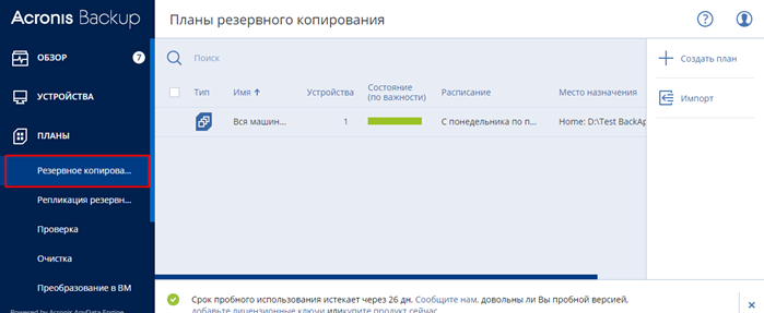 Созданные планы резервного копирования отображаются тут.