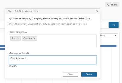 Благодаря интеграции Slack с Ask Data в Tableau Online и Server, пользователи могут поделиться дашбордом, созданным с помощью Ask Data, непосредственно в Slack, что упрощает обмен информацией с коллегами.
