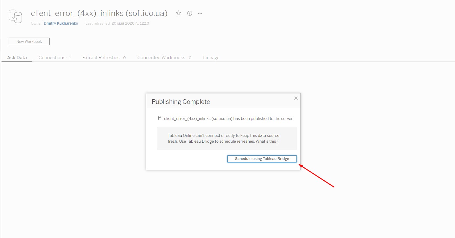 Так же можно изменять уже настроенные экстракты через Tableau Bridge: