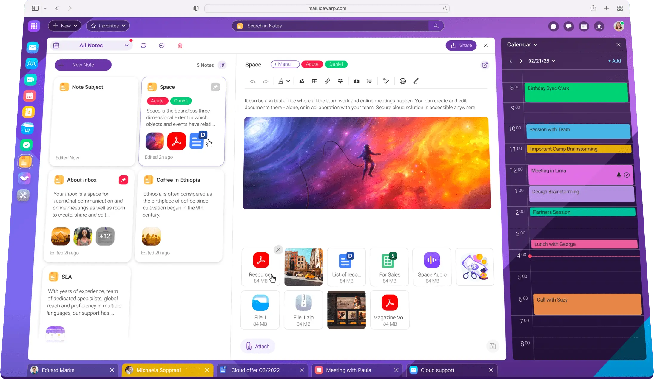 Компания IceWarp известна своими инновационными подходами к коммуникационным технологиям, такими как использование искусственного интеллекта для повышения эффективности работы с электронной почтой и управления задачами. IceWarp активно развивает свои продукты, стремясь предложить пользователям современные и надежные инструменты для организации рабочего процесса.
