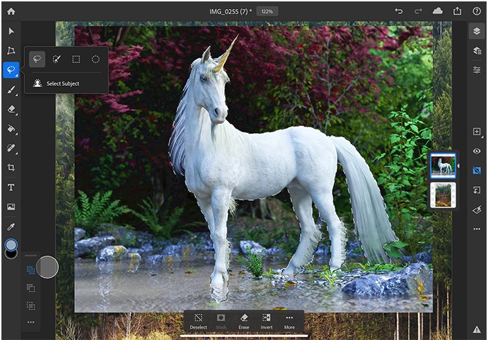 Выбор объекта использует технологию машинного обучения Adobe Sensei AI, позволяющую автоматически выбирать объект для ускорения сложных операций выбора. На рынке нет другого приложения для iPad с таким же мощным и простым в использовании инструментом.