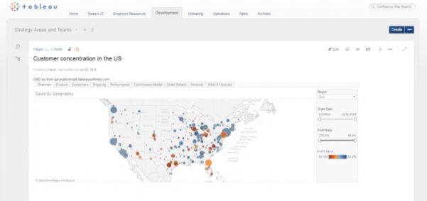Странички Wiki – это важнейший информационный ресурс для бизнеса. Вы можете с легкостью дополнять информацию, содержащуюся в этих материалах в сочетании с дашбордами Tableau при помощи HTML кода. Кроме того, для более продвинутой интеграции можно использовать Javascript API от Tableau, функционал которого описан в разделе “Встроенная аналитика в веб порталы” Часть 1.