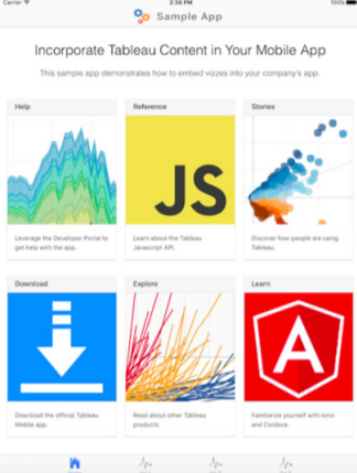 Бесплатный фреймворк для создания мобильных приложений Tableau (Mobile App Bootstrap), доступный в двух форматах: в Objective-C и в Cordova, обеспечивает простое подключение дашборда к собственному приложению вашей компании. Tableau также имеет подключаемый к мобильному устройству пользовательский плагин.