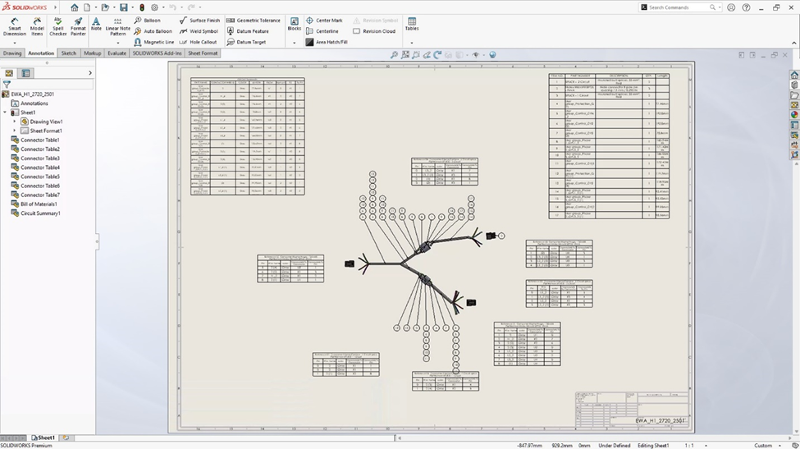 Создание улучшенных чертежей жгутов на основе 3D-трасс улучшает организацию и расположение таблиц и шаров на сплющенных чертежах. Документация по электрическим жгутам автоматически обновляется после внесения изменений в конструкцию благодаря усовершенствованному автоматическому размещению таблиц, размеров, шаров и форматов.