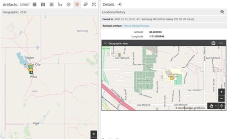 Данные о местоположении зачастую очень важны во время исследования инцидентов, поэтому разработчики XRY упростили разбор и анализ этих данных. Встроенный инструмент картирования в XRY отображает разные области данных, в которые включена информация о местоположении, которую легко анализировать, дополняя ее гиперссылками, которые связаны с конкретной информацией о местоположении.