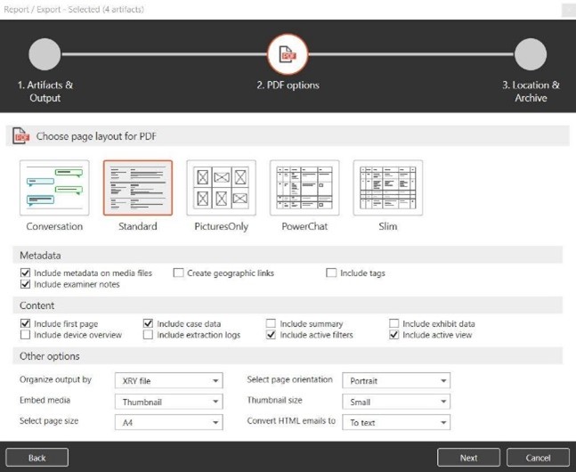 При подготовке отчета, пользователь может выбрать не только разные типы файлов, но и макеты и форматы, в зависимости от выбранного типа файла. Важно отметить, что эта опция отсутствует в некоторых других мобильных криминалистических инструментах.