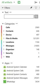XRY кодирует эти разделы цветом в удобном для навигации меню, которое также отображает общее количество этих элементов (чтобы было понятно, сколько времени можно потратить на их просмотр).