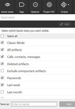 Также в XRY доступны “Быстрые просмотры”, с помощью которых пользователь могут отфильтровать данные по файлу, типу, дате, удаленным элементам и т.п. Эта удобная функция помогает упростить процесс расследования и сэкономить время.