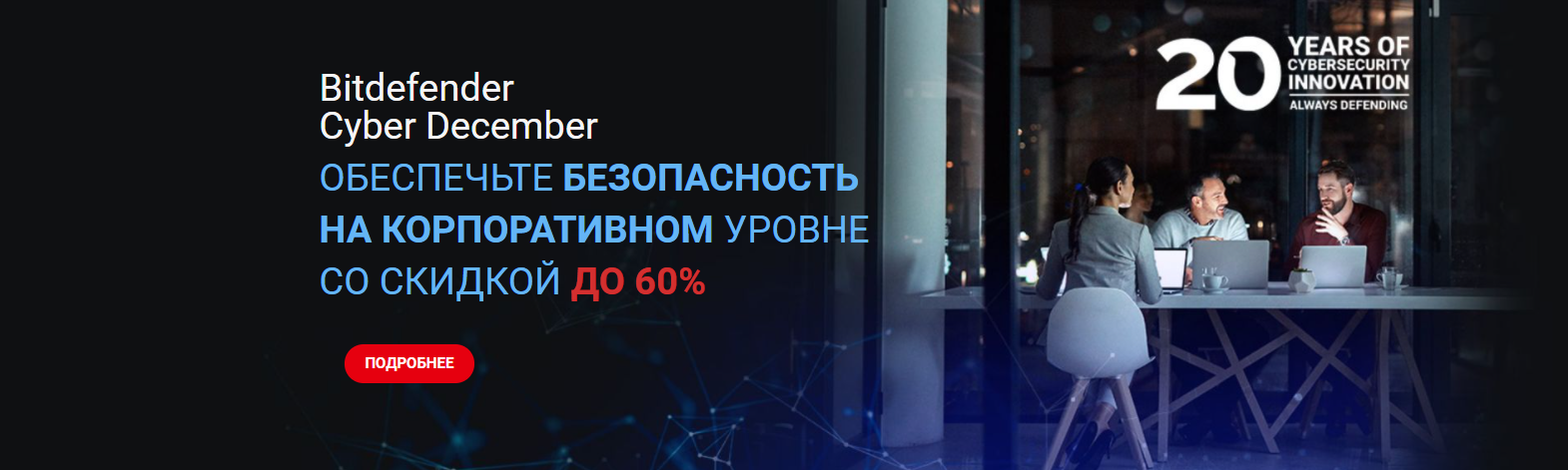 Только с 25 ноября до 31 декабря 2021 года -60% на бизнес-решения Bitdefender!
