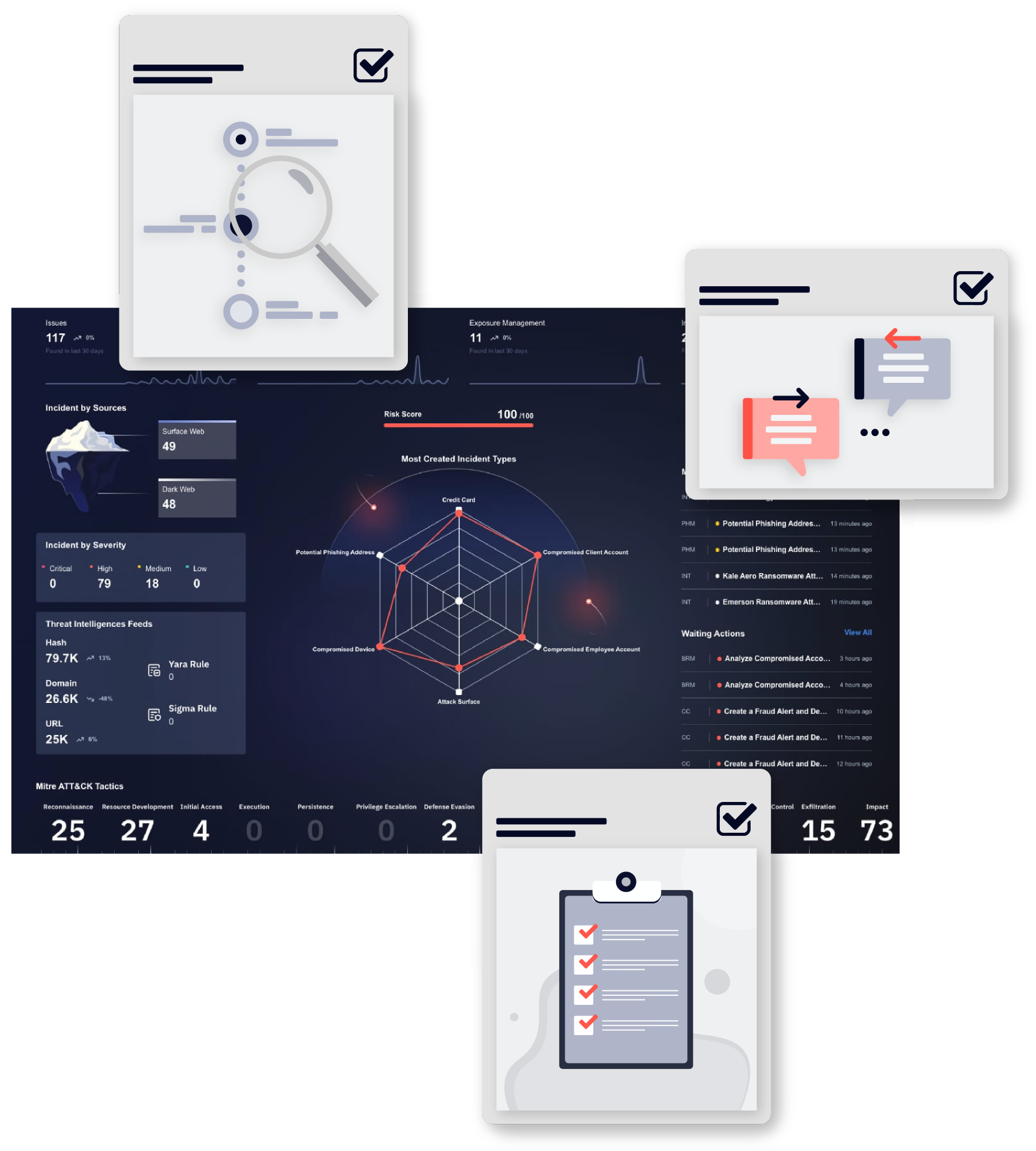 Додатково, завдяки модулю Threat Intelligence, рішення надає актуальні дані про новини у сфері кібербезпеки, нові загрози, а також про техніки та тактики, які використовують зловмисники. Це дозволяє організації бути проактивною та своєчасно реагувати на зміну кіберзагроз.