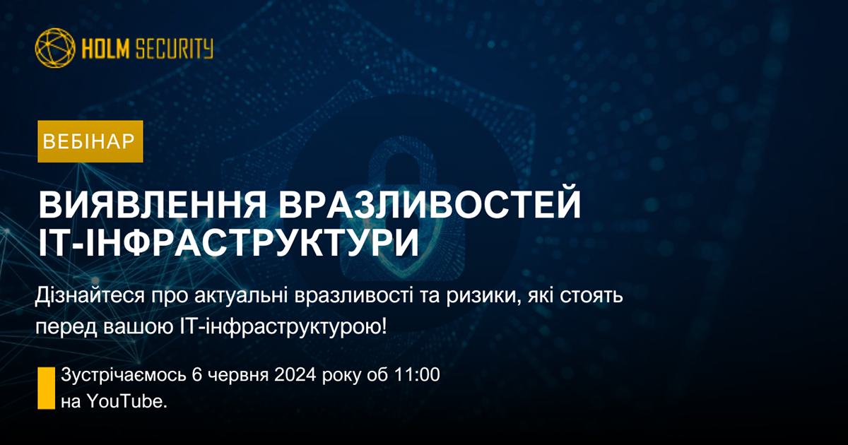 Виктория Дубницкая2024-05-21T19:10:29+03:0006/06 | 11:00 Вебінар “Виявлення та усунення вразливостей ІТ-інфраструктури: проактивний підхід з Holm Security”Виктория Дубницкая2024-05-21T19:10:29+03:00Травень 14, 2024|