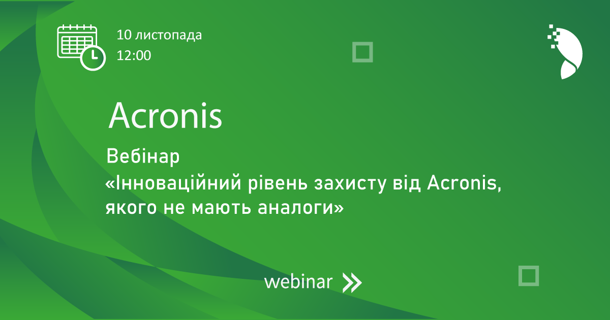 Виктория Дубницкая2020-10-08T15:34:03+03:00Вебінар: “Як налаштувати Acronis Cyber Backup у віртуальному середовищі Microsoft Hyper-V”Виктория Дубницкая2020-10-08T15:34:03+03:00Жовтень 1, 2020|