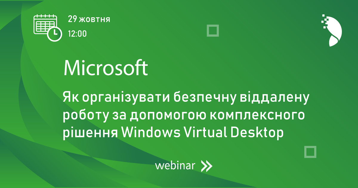 Виктория Дубницкая2020-10-29T17:09:03+03:00Вебінар “Як швидко та ефективно організувати безпечну віддалену роботу за допомогою комплексного рішення Windows Virtual Desktop”Виктория Дубницкая2020-10-29T17:09:03+03:00Жовтень 21, 2020|