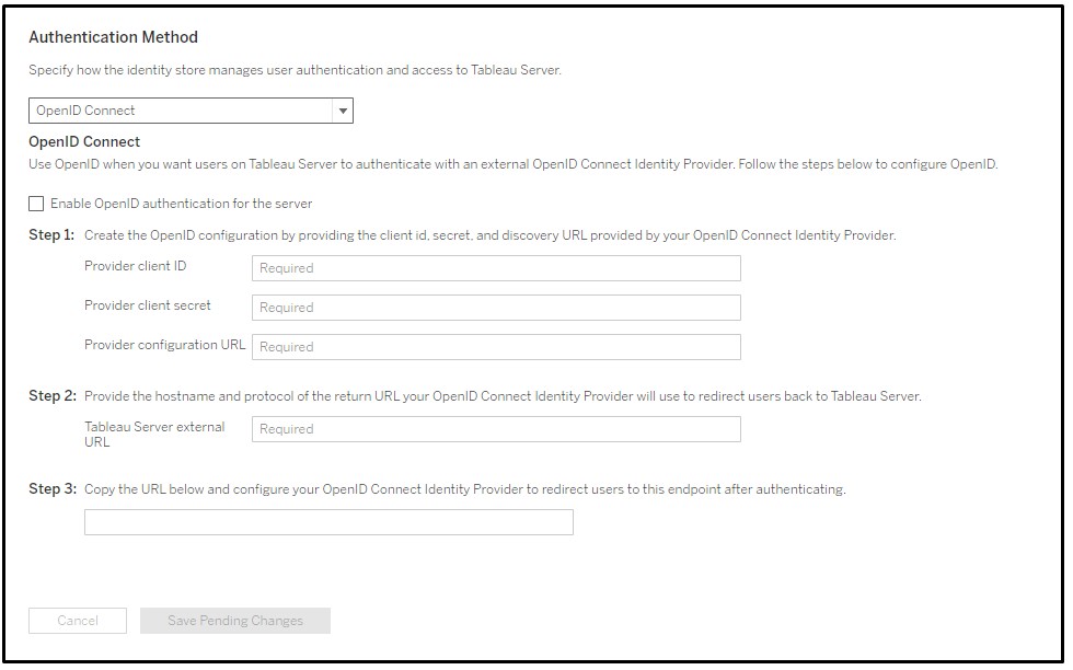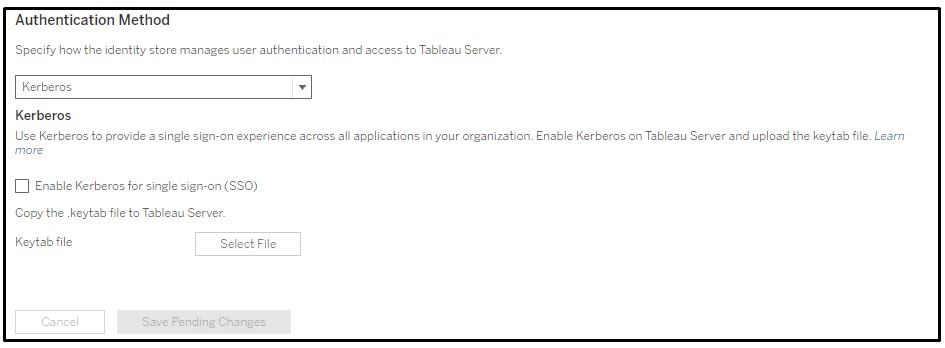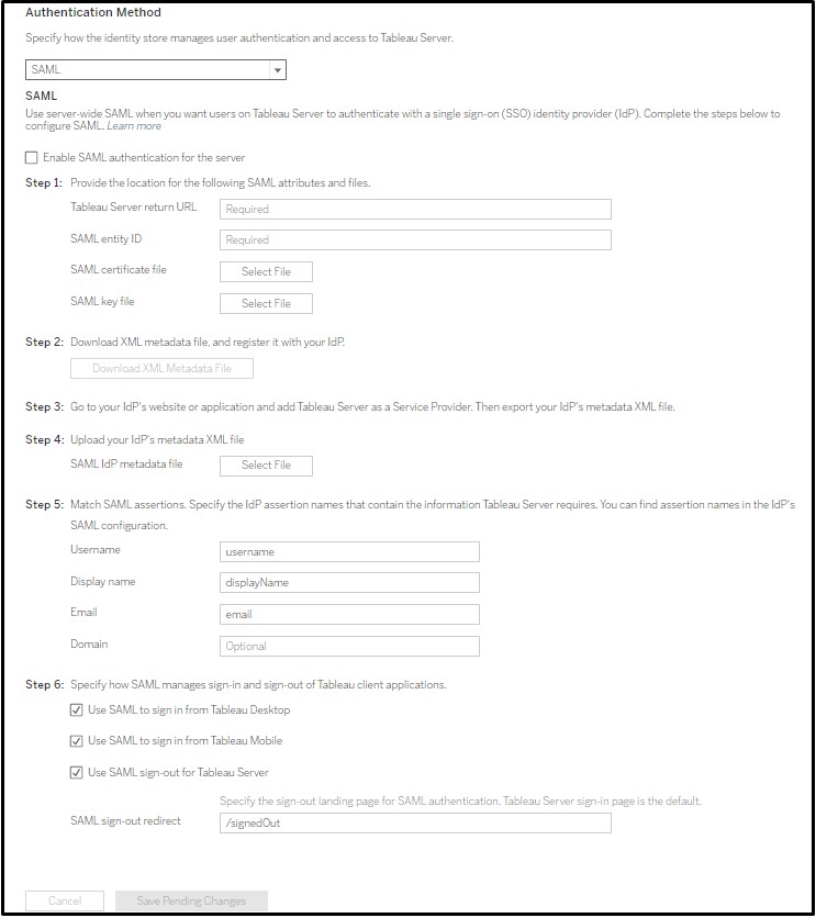 - для Tableau Server відкрийте Tableau Service Manager (TSM): в браузері https: //: 8850 і перейдіть в Configuration> User Identity & Access> Authentication Method