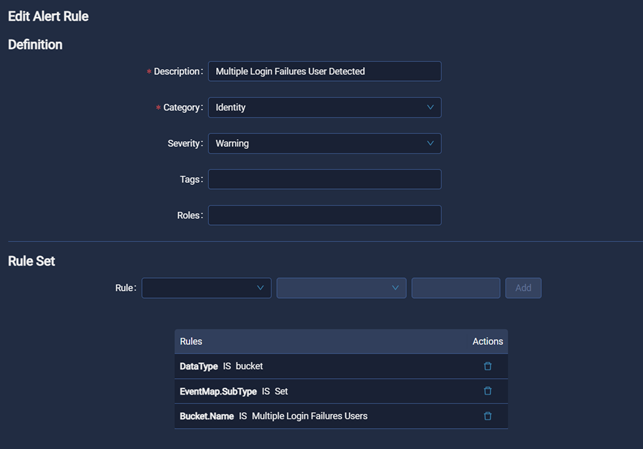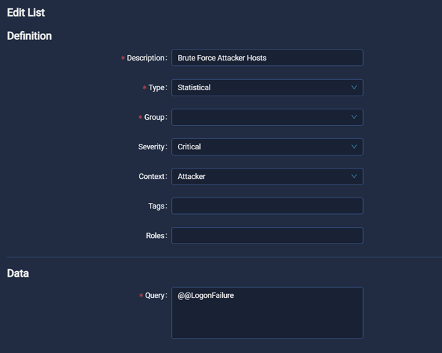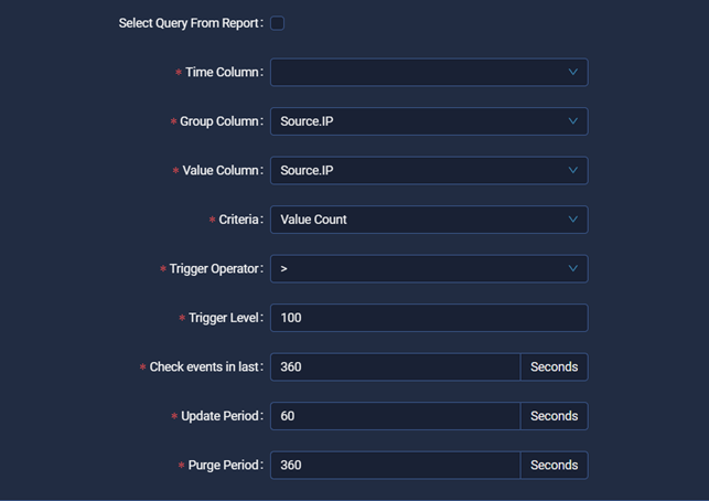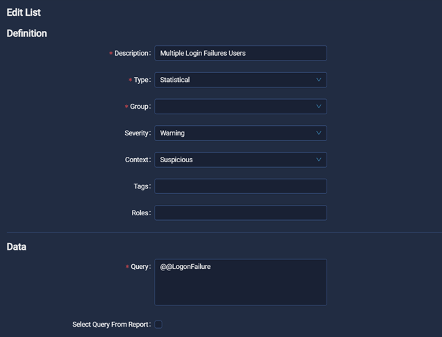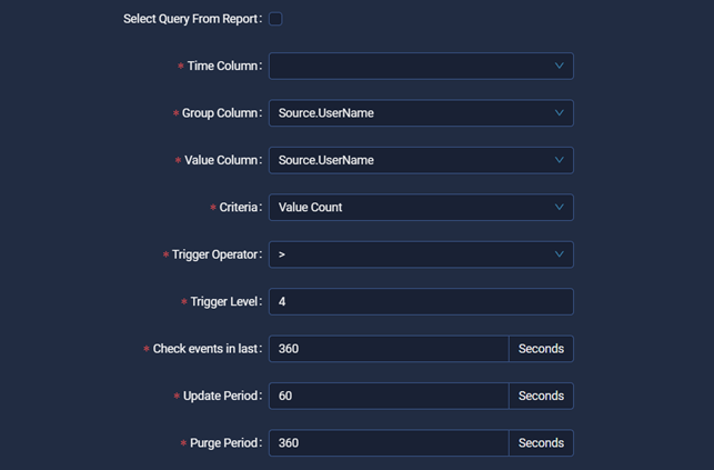Наприклад, якщо подій невдалого логіну більше 100 за останні 10 хвилин (360 секунд), то буде згенерований інцидент і всі логіни облікових записів будуть додані до спеціального списку.