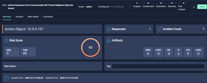 За допомогою картки самого інцидента значно легше аналізувати виявлені інциденти і централізовано виконувати дії щодо їх обробки інтегрованими рішеннями, в тому числі й інструментами кібербезпеки.
