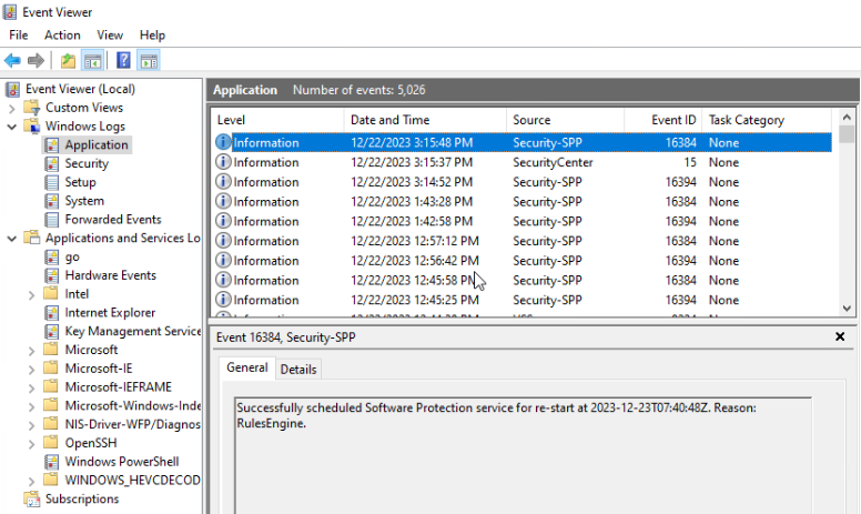 Події ж сервісів та програм які встановлені та працюють у системі згруповані у однойменній папці – Applications and Services Logs. В цій папці занадто багато категорій щоб їх усі розглядати. Кількість логів та підпапок в ній залежить від кількості встановлених програм та задіяних сервісів.