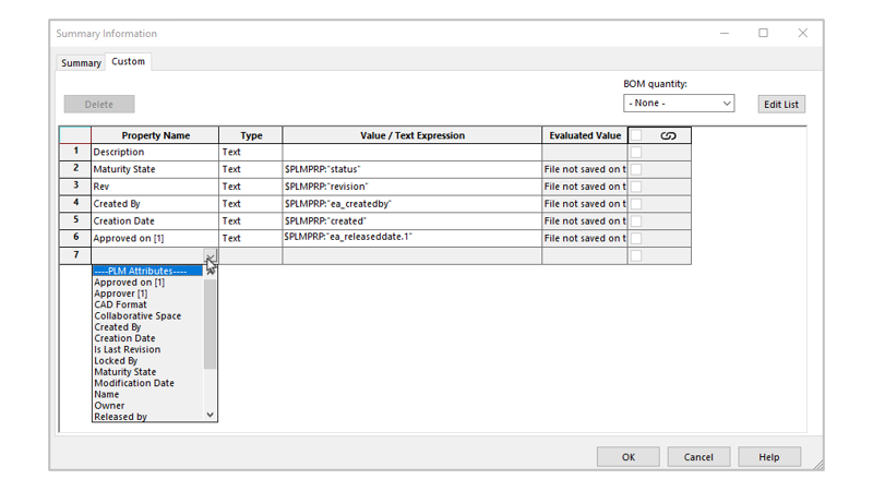 Перед початком налаштуйте шаблон креслення SOLIDWORKS, додавши потрібні атрибути PLM для процесу затвердження. Наприклад, додайте атрибути «Approver» і «Approved on» у замітку в блоці заголовка креслення. Ці атрибути автоматично з’являться у властивостях SOLIDWORKS при підключенні до платформи 3DEXPERIENCE, тому додаткове налаштування не потрібно.