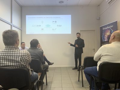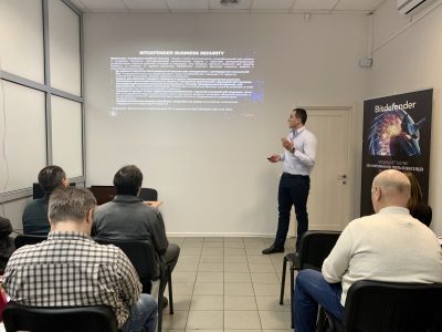 Спеціальними гостями заходу стали представники компанії Bitdefender із Румунії – Maxim Tutuianu, Business Development Manager CEE&CIS та Tiberiu Onosa, Presale Engineer. Для всіх присутніх запрошені експерти провели презентацію компанії Bitdefender і розповіли про основні продукти, а також продемонстрували особливості захисту мережевого трафіку NTSA.