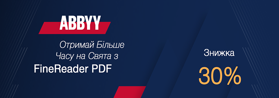 У період із 14 по 23 грудня 2020 року компанія ABBYY проводить промоакцію «ABBYY Holiday promo» на продукт FineReader PDF.