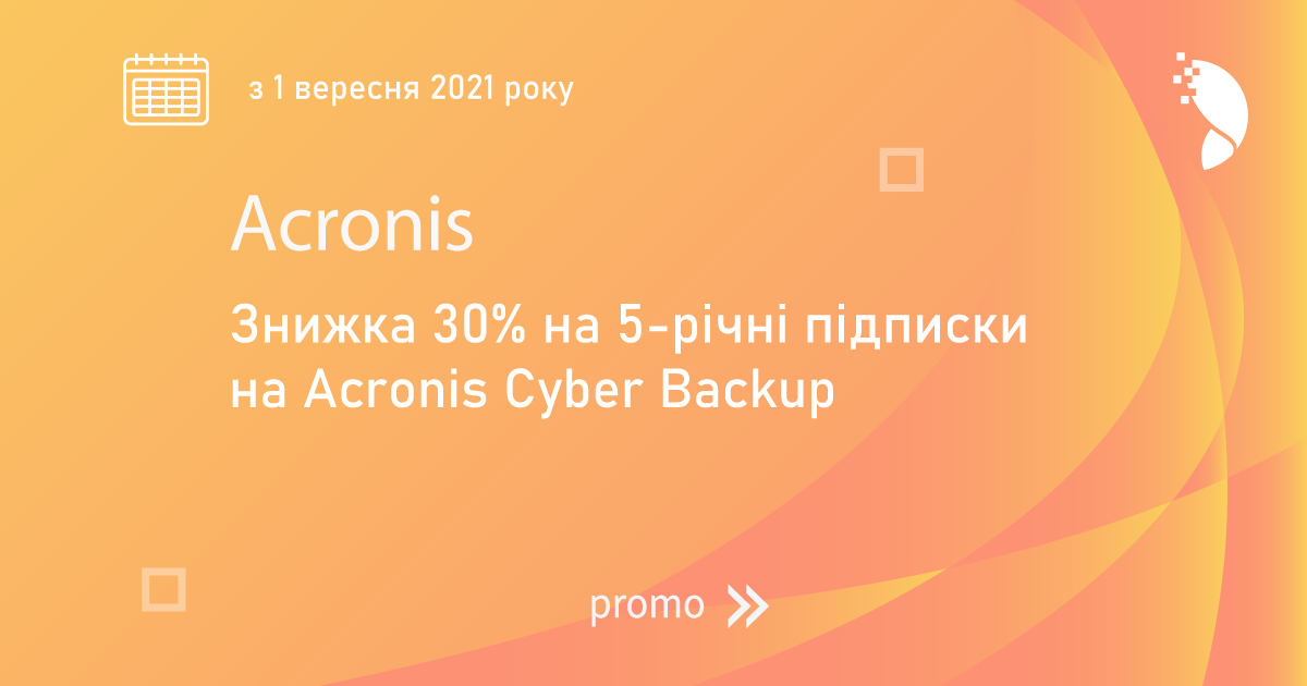 Yuliia Skladaniuk2021-08-04T13:05:54+03:00Acronis пропонує знижку 30% на 5-річні підписки на Acronis Cyber BackupYuliia Skladaniuk2021-08-04T13:05:54+03:00Серпень 4, 2021|
