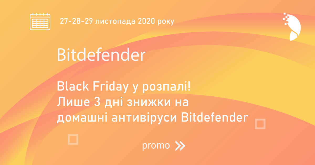 Yuliia Skladaniuk2020-11-26T15:21:42+03:00Black Friday у розпалі! Лише 3 дні знижки на домашні антивіруси BitdefenderYuliia Skladaniuk2020-11-26T15:21:42+03:00Листопад 26, 2020|